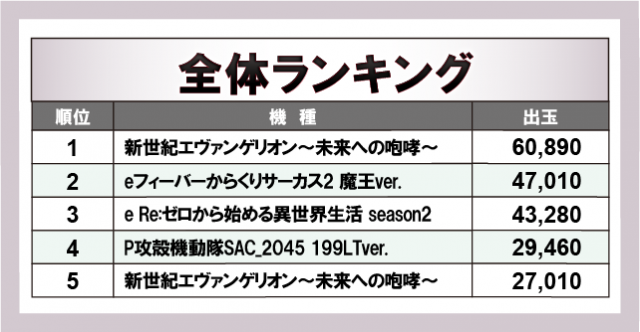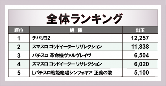 ※出玉数順に掲載しています