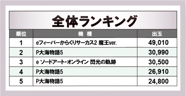 ※出玉数順に掲載しています