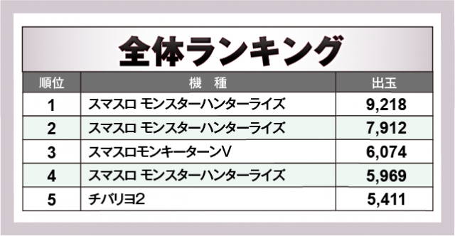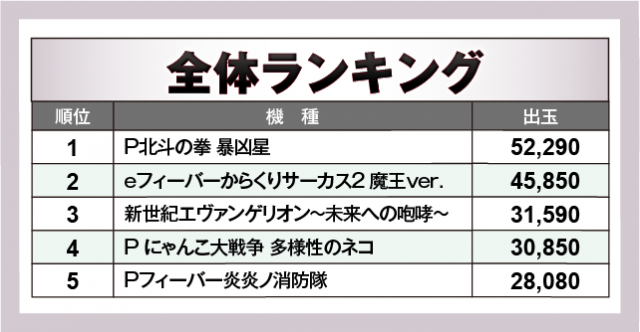 ※出玉数順に掲載しています