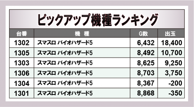 ※出玉数順に掲載しています