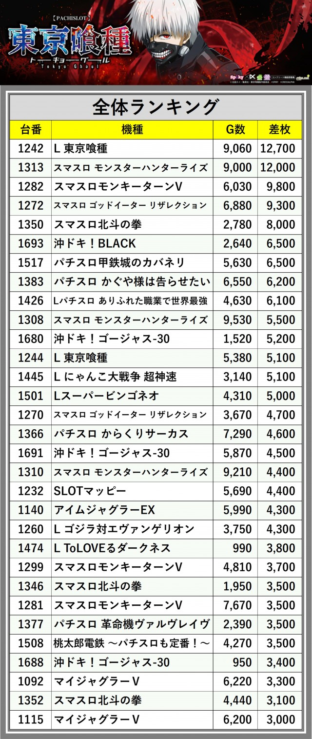 厳選された取材対象機種をはじめ、その他スロット全体から好記録が飛び出した!プレイヤーが楽しんだ1日を下記データにて振り返ってみて欲しい。