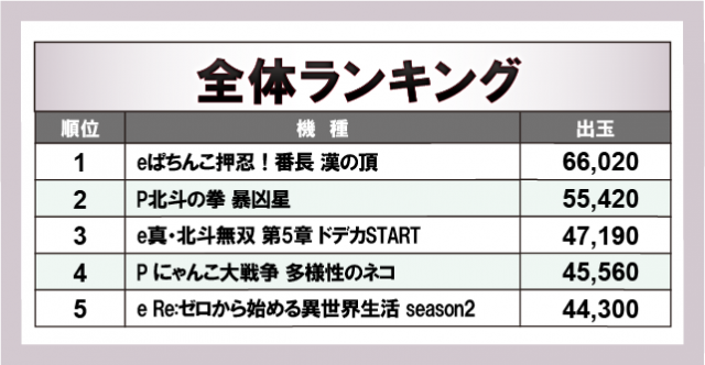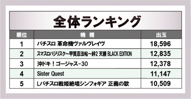 ※出玉数順に掲載しています