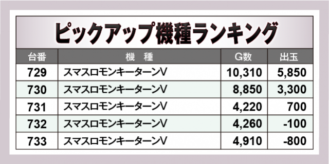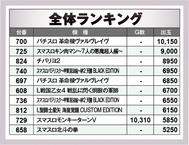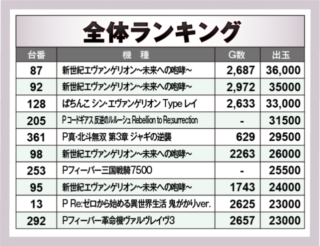 ※出玉数順に掲載しています