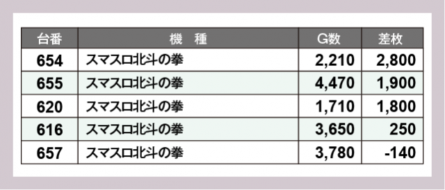 ※差枚数順に掲載しています