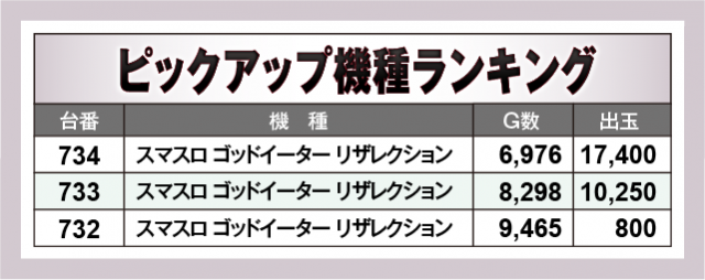 ※出玉数順に掲載しています