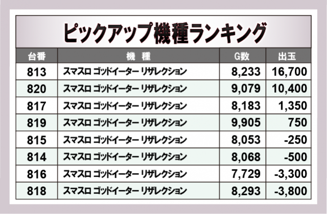 ※出玉数順に掲載しています