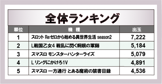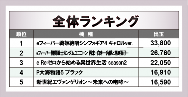 ※出玉数順に掲載しています