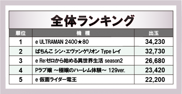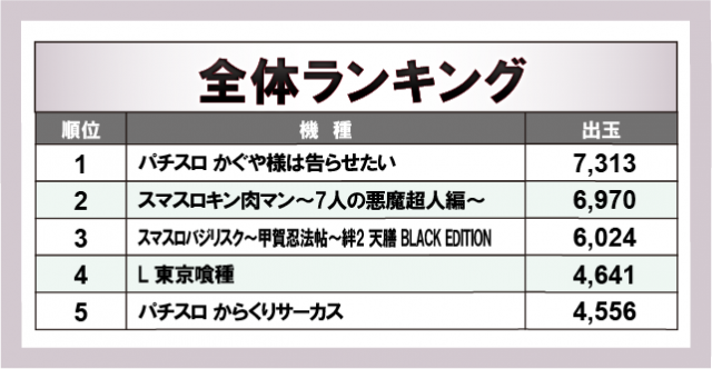 ※出玉数順に掲載しています