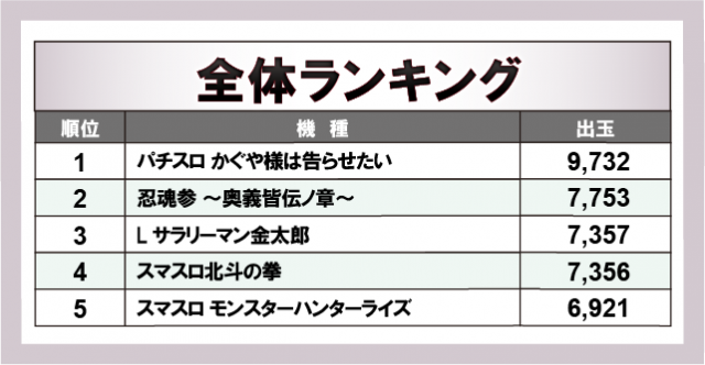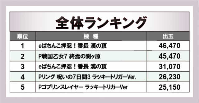 ※出玉数順に掲載しています