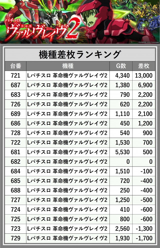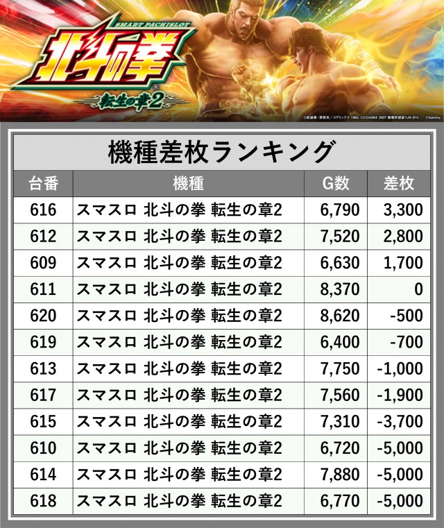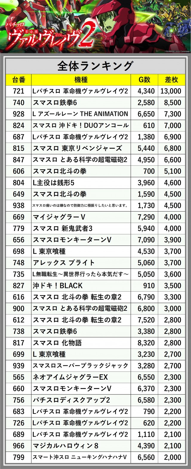 ※差枚数順に掲載しています