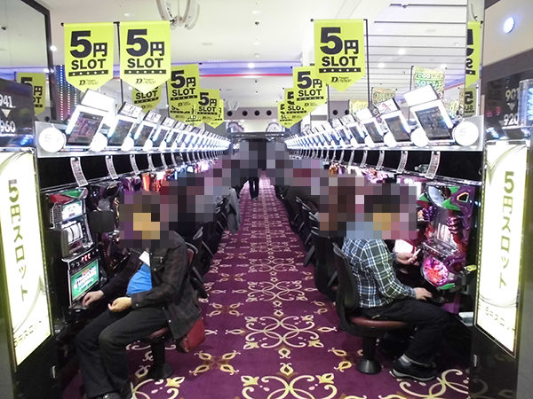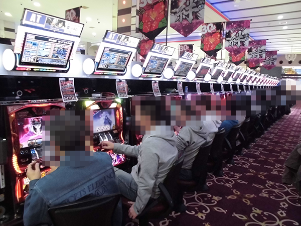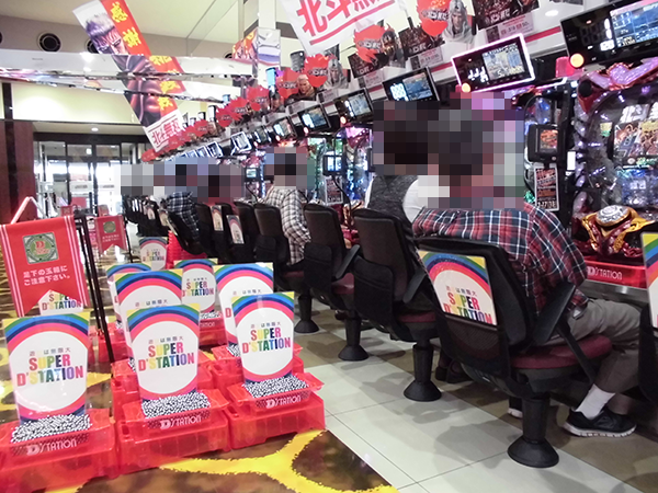 午後の4円パチンコでは、「ぱちんこCR真・北斗無双」が大盛況。シマのあちこちにポテンシャルを発揮しているようなプレイヤーがおり、満足度も高そうであった。