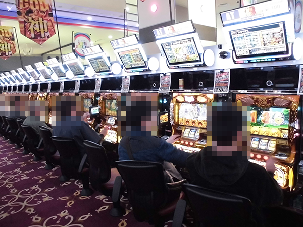「バジリスク~甲賀忍法帖~絆」や「ミリオンゴッド-神々の凱旋-」の盛り上がりが大きく、シマ全体に魅力的な光景が広がっていた。