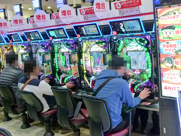 15時ごろの4円パチンコでは、「ぱちんこCR真・北斗無双」や「CR大海物語4」などで、機種のポテンシャルを存分に堪能するプレイヤーを目撃している。