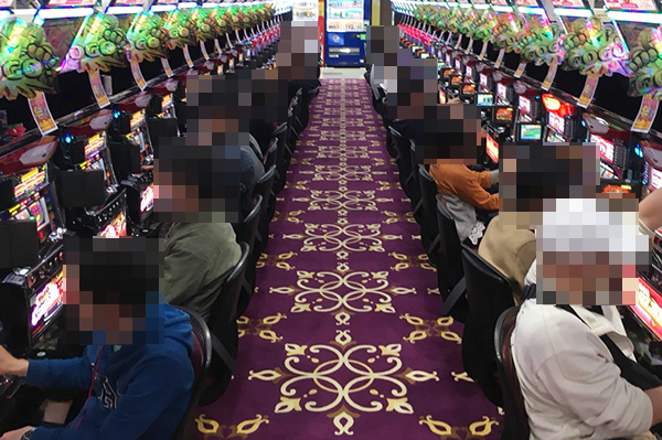 ジャグラーシリーズや「パチスロ 超 GANTZ」も活況。プレイヤーは有意義な時間を過ごしているように思えた。