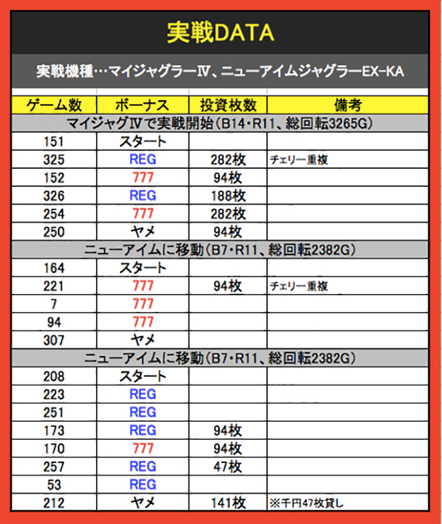 『ニューアイムジャグラーEX-KA』で実戦中。