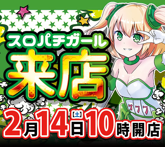 🌈本日14日(土)🌈10時オープン🌈スロパチガール来店🌈