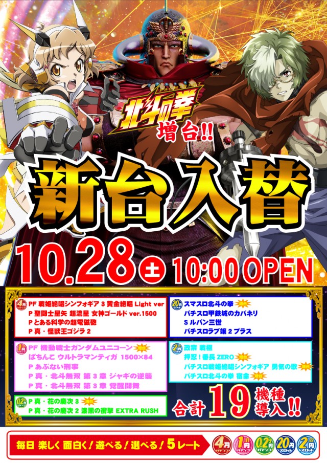 明日、新台入替!!10月28日10時OPEN🌈🌈🌈