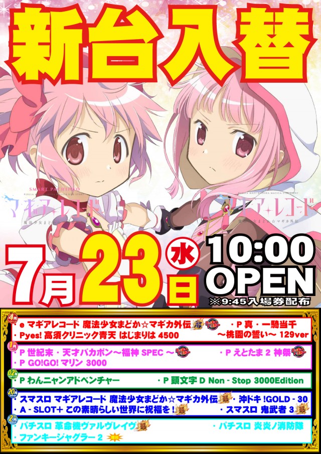 本日㉓日(水) 新台入替あさ⑩時開店🌈🌈🌈