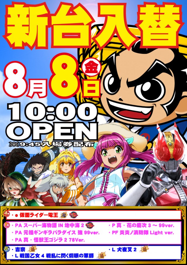本日❽日(金) 新台入替あさ⑩時開店🌈🌈🌈