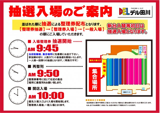 入場方法に変更がある場合は、LINEにてお知らせします。 |