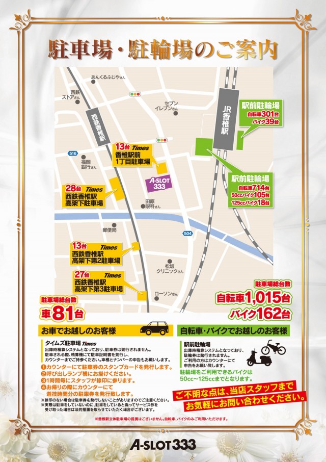 なし 店舗近くのタイムズ様と提携!駐車場が分からない場合は店舗にお電話ください!092-405-0313