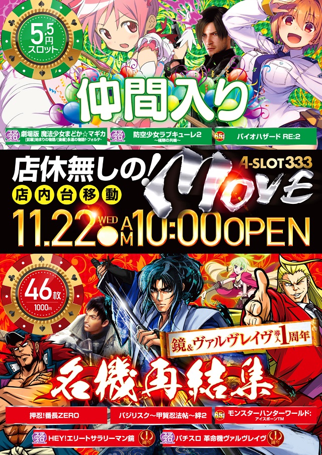 11/22 MOVE!店休なしの店内移動!朝10時OPEN!