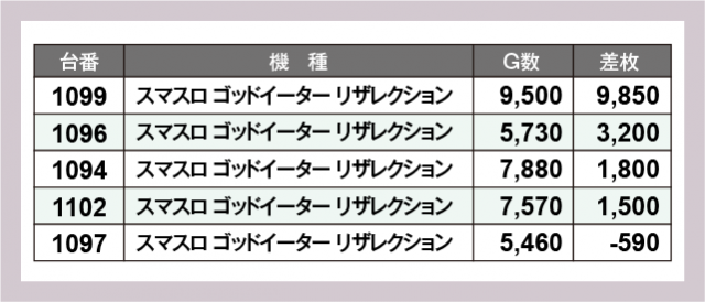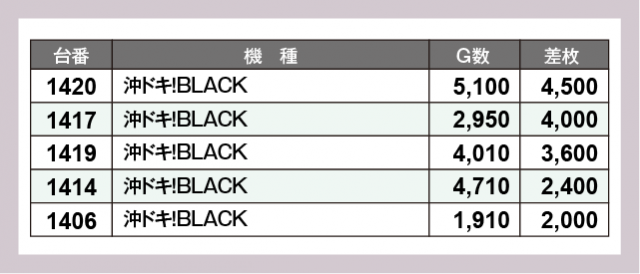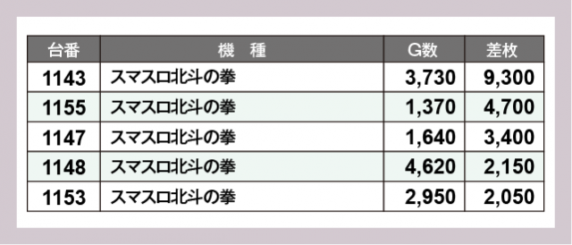 ※差枚数順に掲載しています