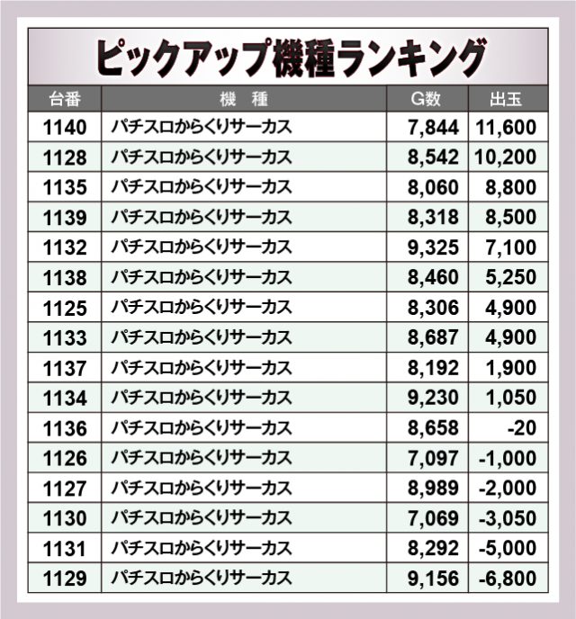 ※出玉数順に掲載しています