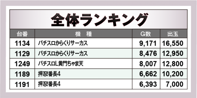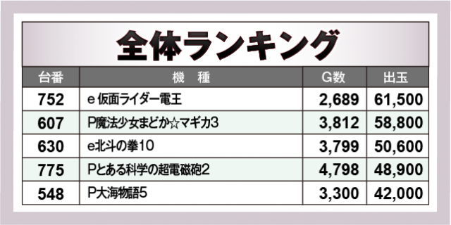 ※出玉数順に掲載しています