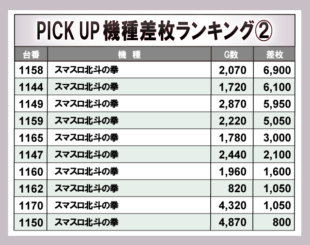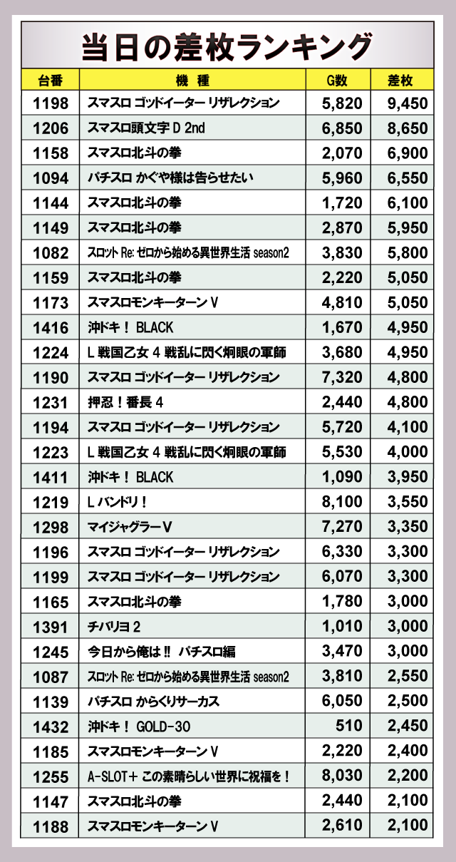 ※差枚数順に掲載しています。
