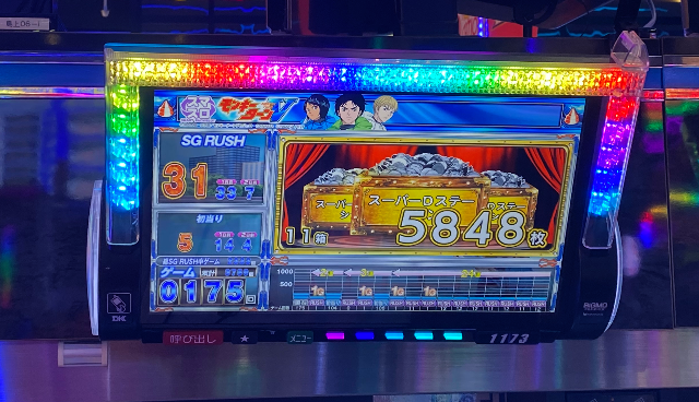 万枚OVERといった派手な結果こそ残せていないが、店内各所でじっくりと遊技された形跡が見て取れる。『スマスロ ゴッドイーター リザレクション』で+9,000枚OVER、『スマスロ頭文字D 2nd』で+8,000枚OVERをマークするほか、多数の大台突破台を確認できる。スマスロを筆頭に盛り上がりを形成しており、各所でファンが笑顔を浮かべる光景が広がっていたようだ。