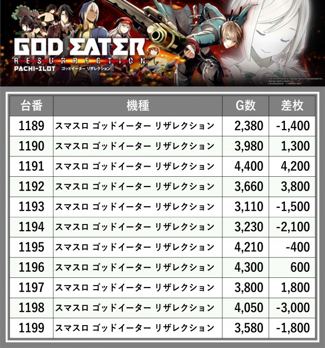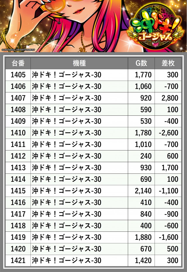 厳選された取材対象機種をはじめ、その他スロット全体から好記録が飛び出した!プレイヤーが楽しんだ1日を下記データにて振り返ってみて欲しい。