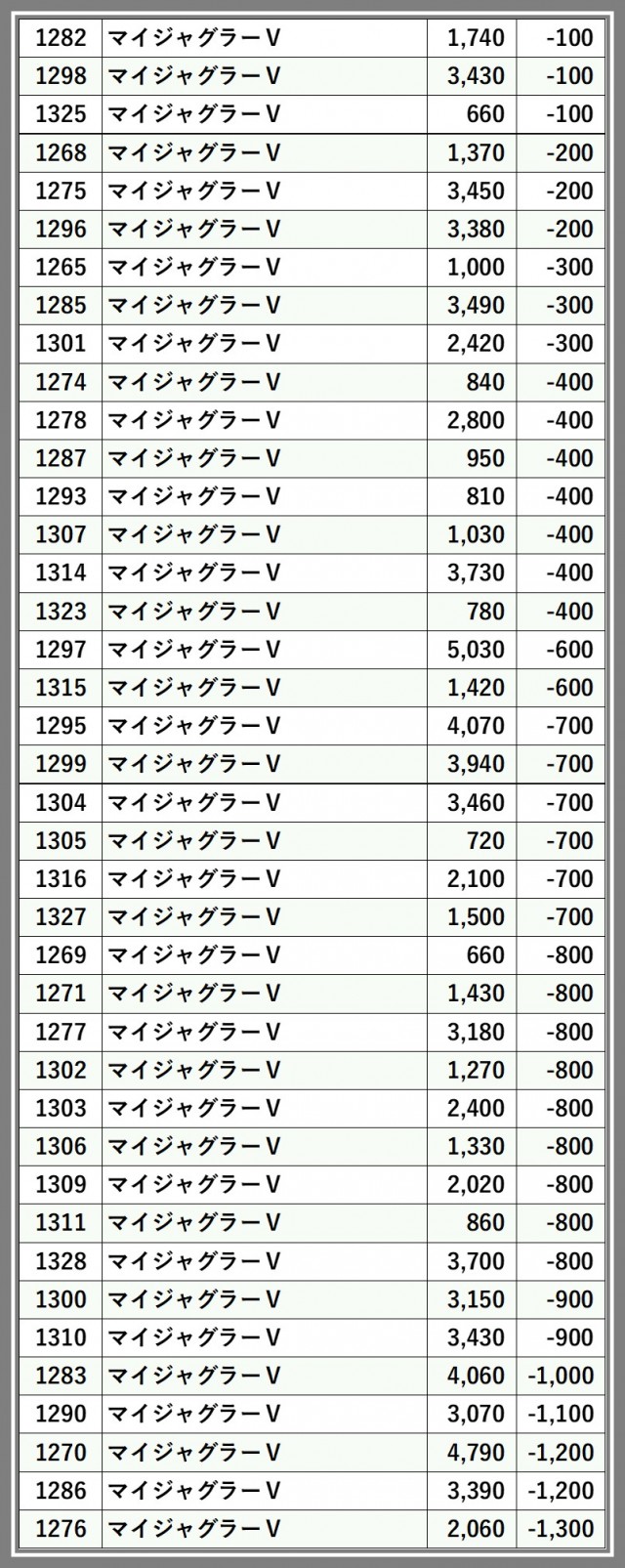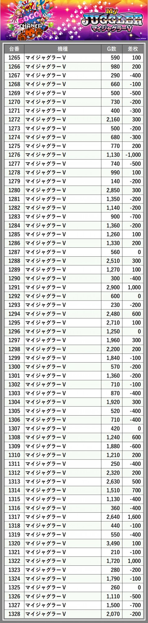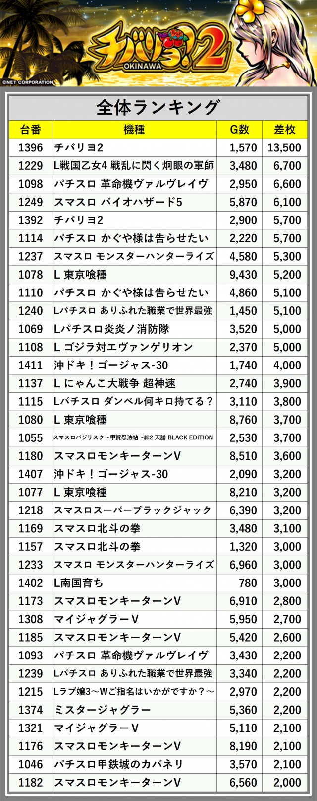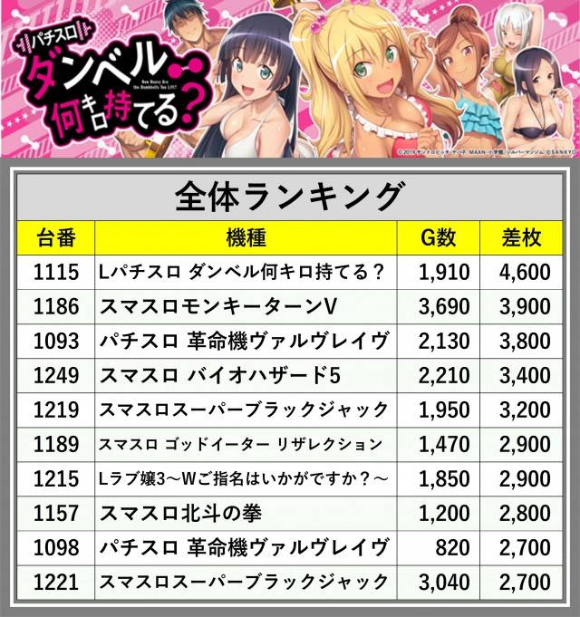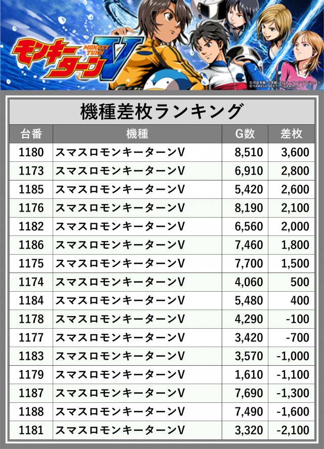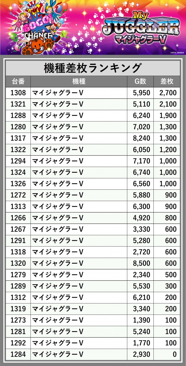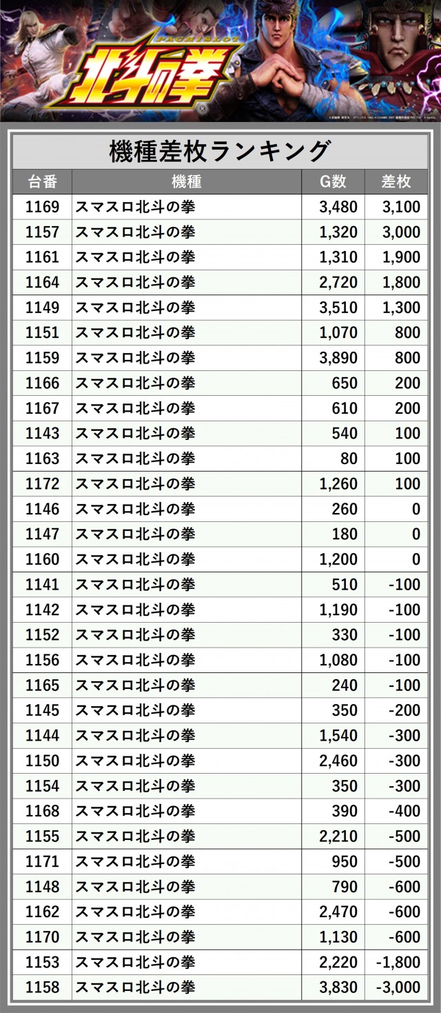 ※差枚数順に掲載しています