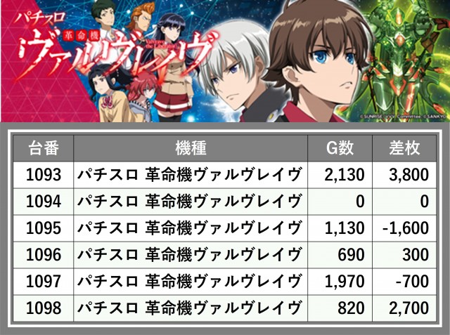 ※台番順に掲載しています