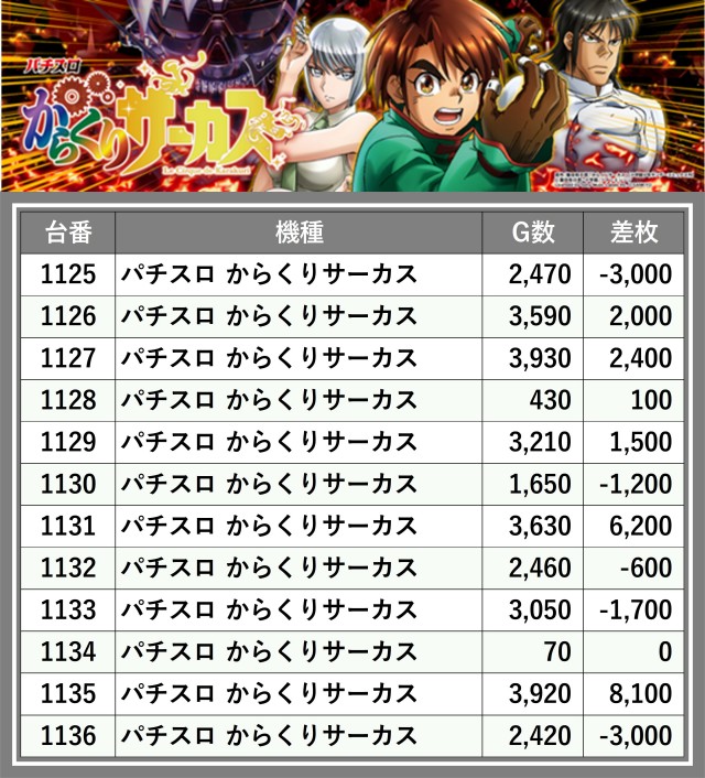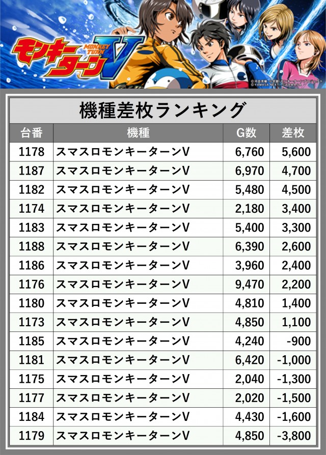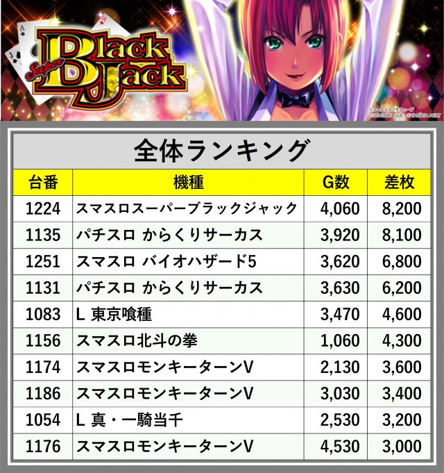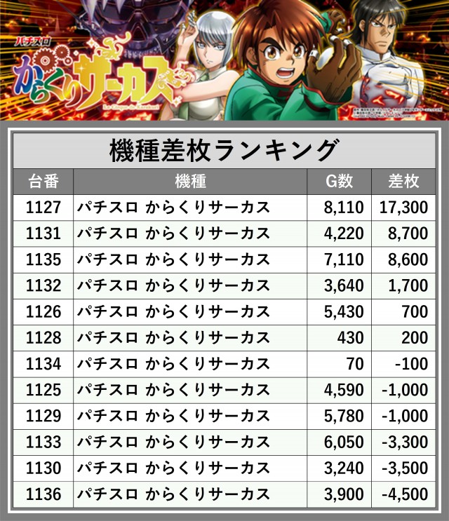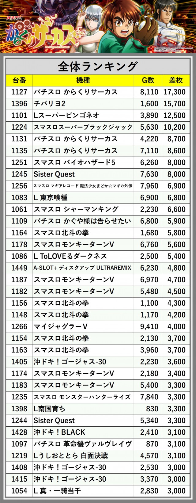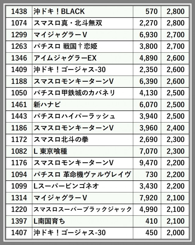 ※差枚数順に掲載しています