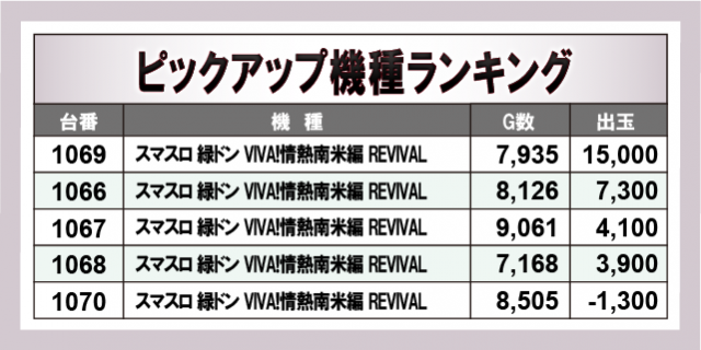 ※出玉数順に掲載しています