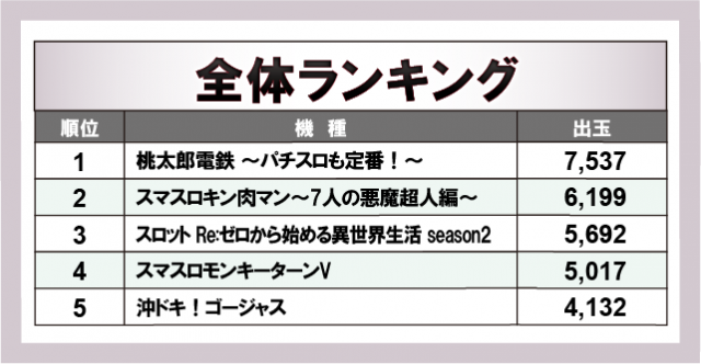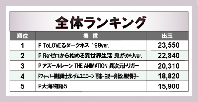 ※出玉数順に掲載しています