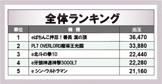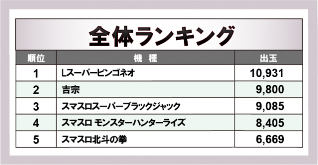 ※出玉数順に掲載しています