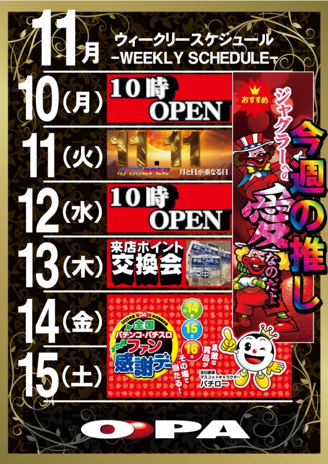1位 10月25日(土) 2位 10月24日(金) 3位 11月6日(木)