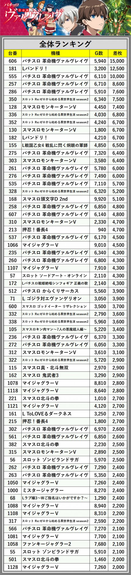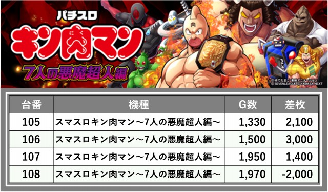 厳選された取材対象機種をはじめ、その他スロット全体から好記録が飛び出した!プレイヤーが楽しんだ1日を下記データにて振り返ってみて欲しい。