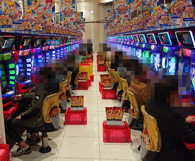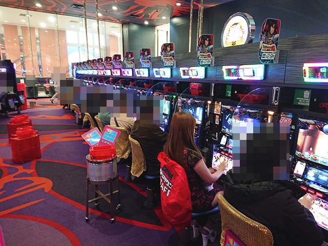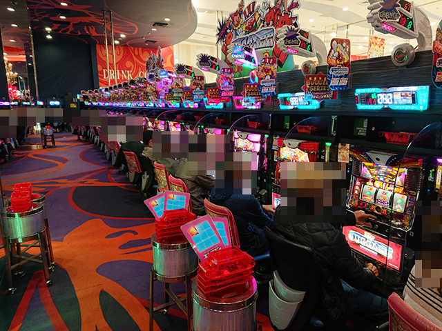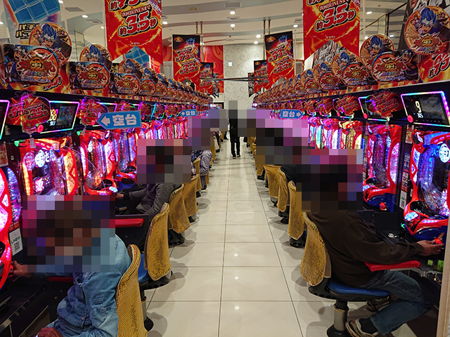店内をみてみると、すでにパチンコもパチスロも大にぎわい!