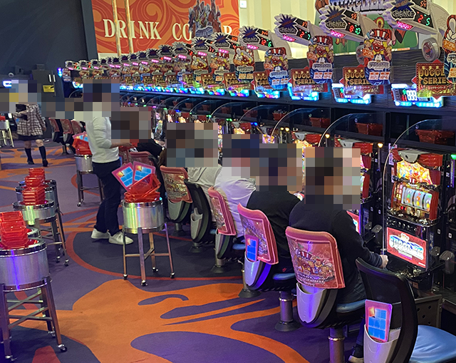 「沖ドキ!2-30」や「マイジャグラーⅣ」に活躍をしている姿があり、華やかな光景が広がっていました。