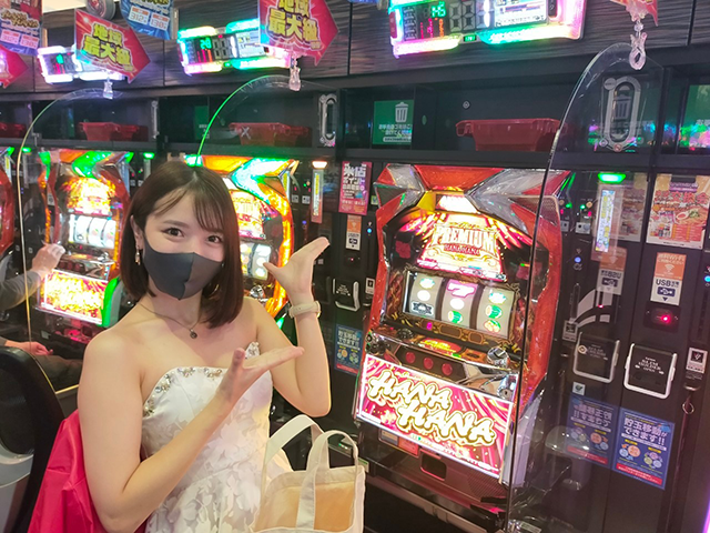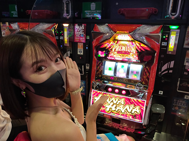 そんななかで、いなちゃんはパチスロの「プレミアムハナハナ-30」で実戦開始!