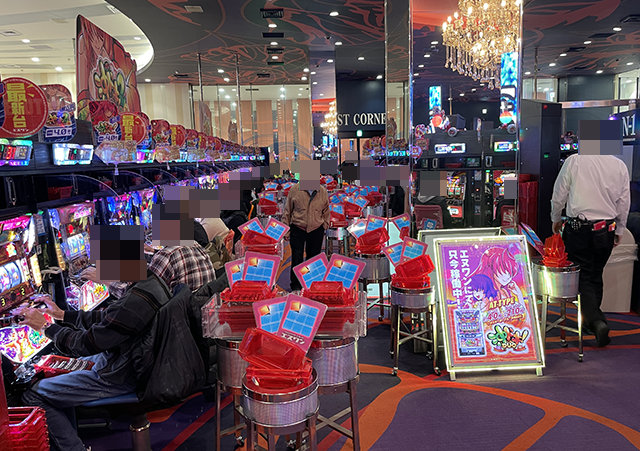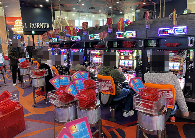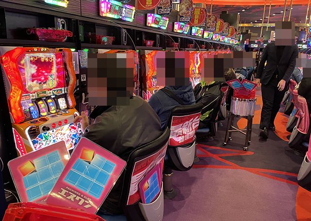 お昼頃にホール内をみてみると、パチンコとパチスロの両方が大にぎわい!