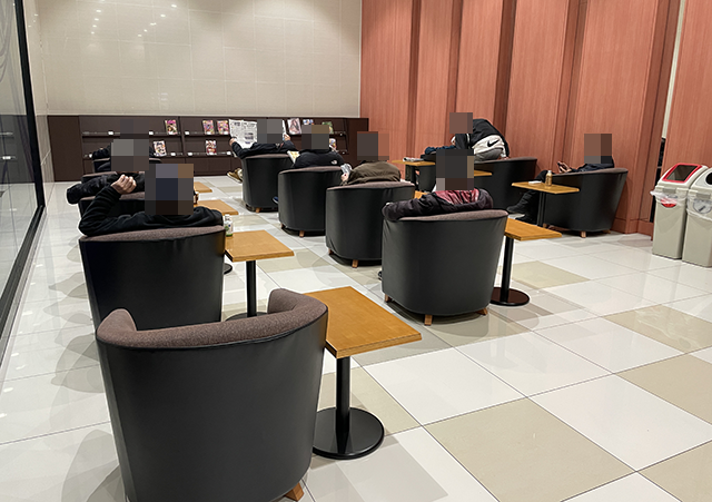 清潔感のあるホール内には広々としたレストスペースがあり、のびのびとくつろぐことができます。