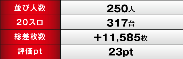 パチスロ全体では、優秀台を中心に様々な機種が活躍したこともあり、トータルの差枚は+11,585枚を記録。評価ポイントも23ptをあげており、まさに快勝の一言。今後の「ヒーローズレポート」も楽しみになる一戦を見せてくれたのであった。