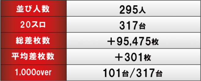 さて、今回の『エヌワン郡山店』の「英雄の軌跡~ヒーローズレポート~」をご紹介してきたわけだが、トータル差枚数のほうはというと+95,475枚となっており、今回も圧勝という結果に終わった。前回12月29日が+127,694だったのでそれと比較すると差枚数自体は少なくなったが、それでも当日「英雄」となったプレイヤーもかなり多いのではないだろうか。次回実施の際も大いに期待したいところだ。