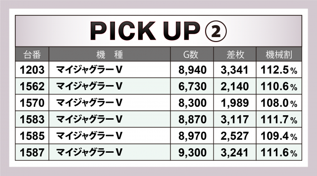 さらに『アイムジャグラーEX』『マイジャグラーⅤ』といったボーナスタイプが安定の結果を残した。