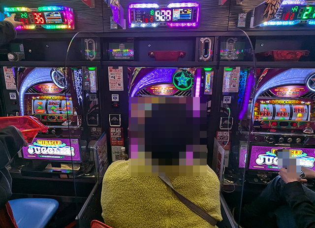 「マイジャグラーⅤ」が人気となっており、楽しそうに過ごしているプレイヤーも多い。