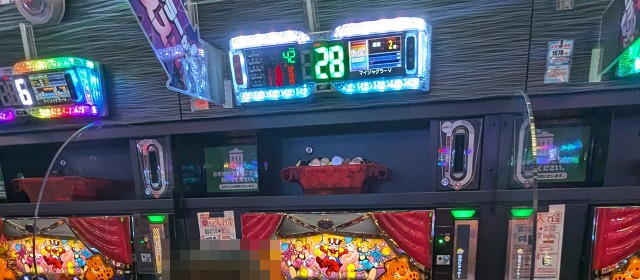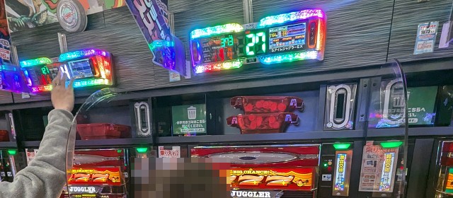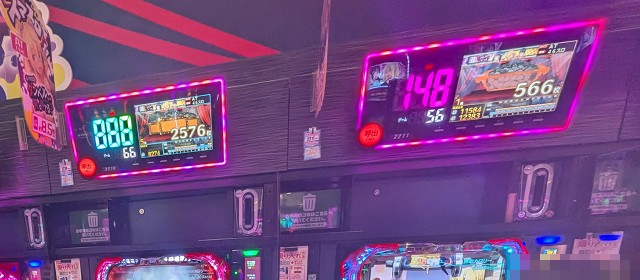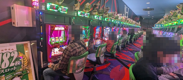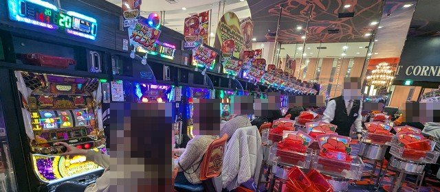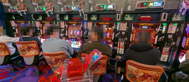 なお直前に掲載した写真でもお分かりの通り、[1000円/182枚] スロ&1パチといった低レートも稼働が高く連チャン中の台が複数だったことにも触れておきたい。